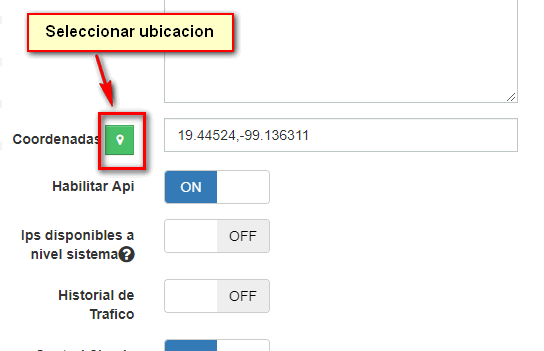 Para más información sobre como configurar puede ir al manual de AGREGAR COORDENADAS AL CLIENTE https://wisphub.net/documentacion/articulo/agregar-api-keys-18/